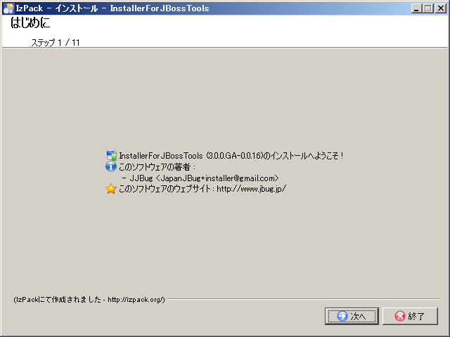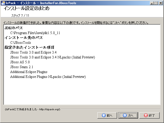 Eclipseを含むJBoss Toolをインストールするパスを入力して、[次へ]ボタンをクリックする。