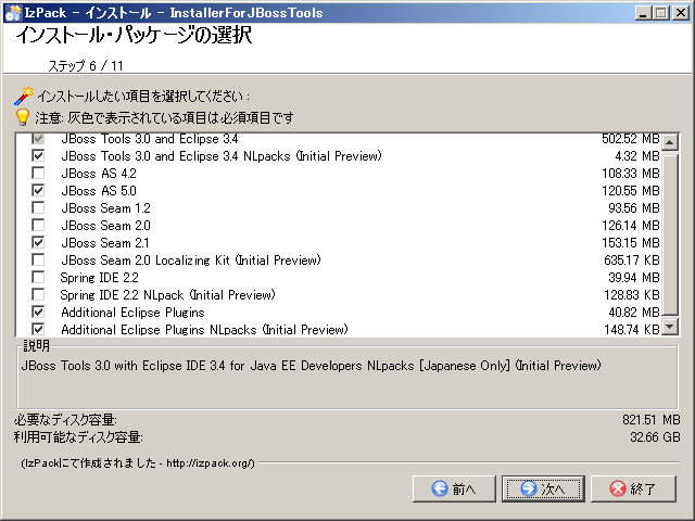 - インストール・パッケージの選択