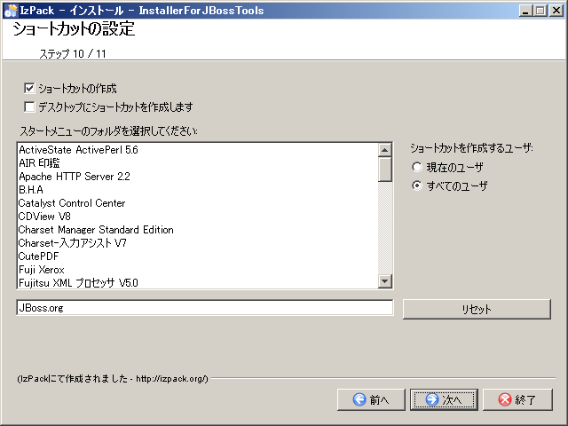 Eclipseを含むJBoss Toolをインストールするパスを入力して、[次へ]ボタンをクリックする。